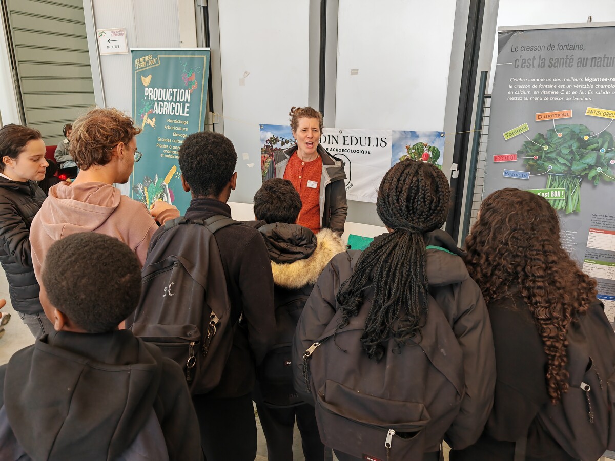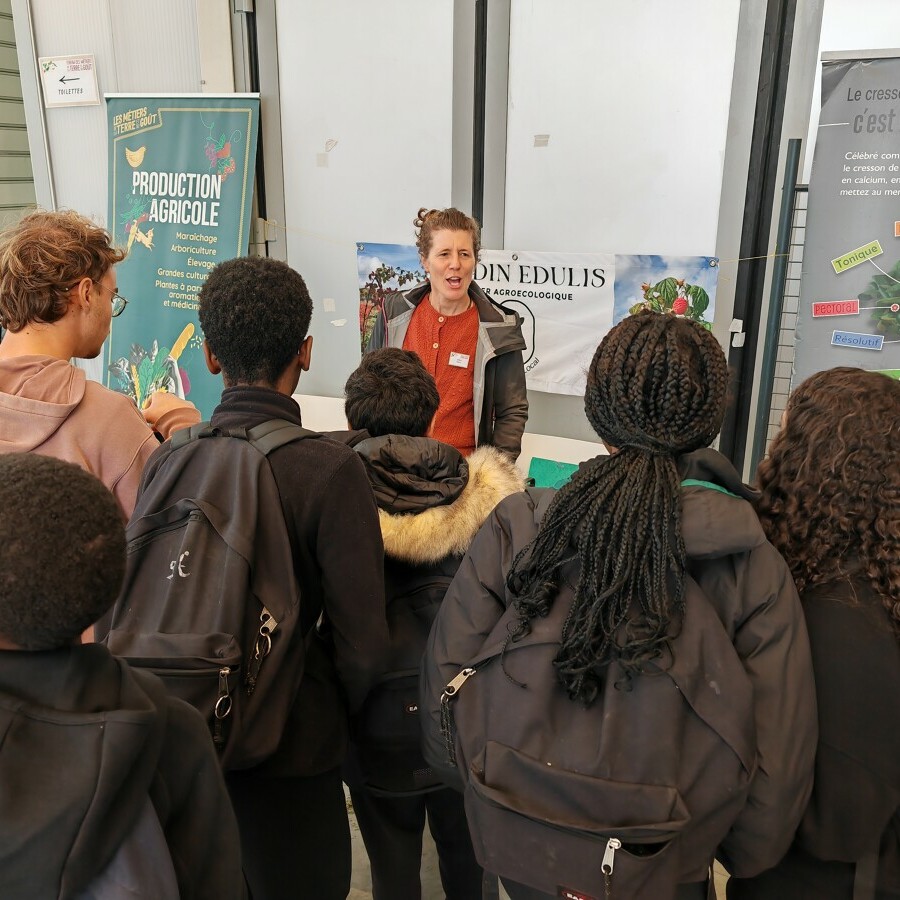 Après avoir préparé leurs questions en classe, les élèves mènent l’interview et découvrent qu’il est possible de travailler en lien avec l’agriculture durable, sans renoncer à la vie de citadin.e.